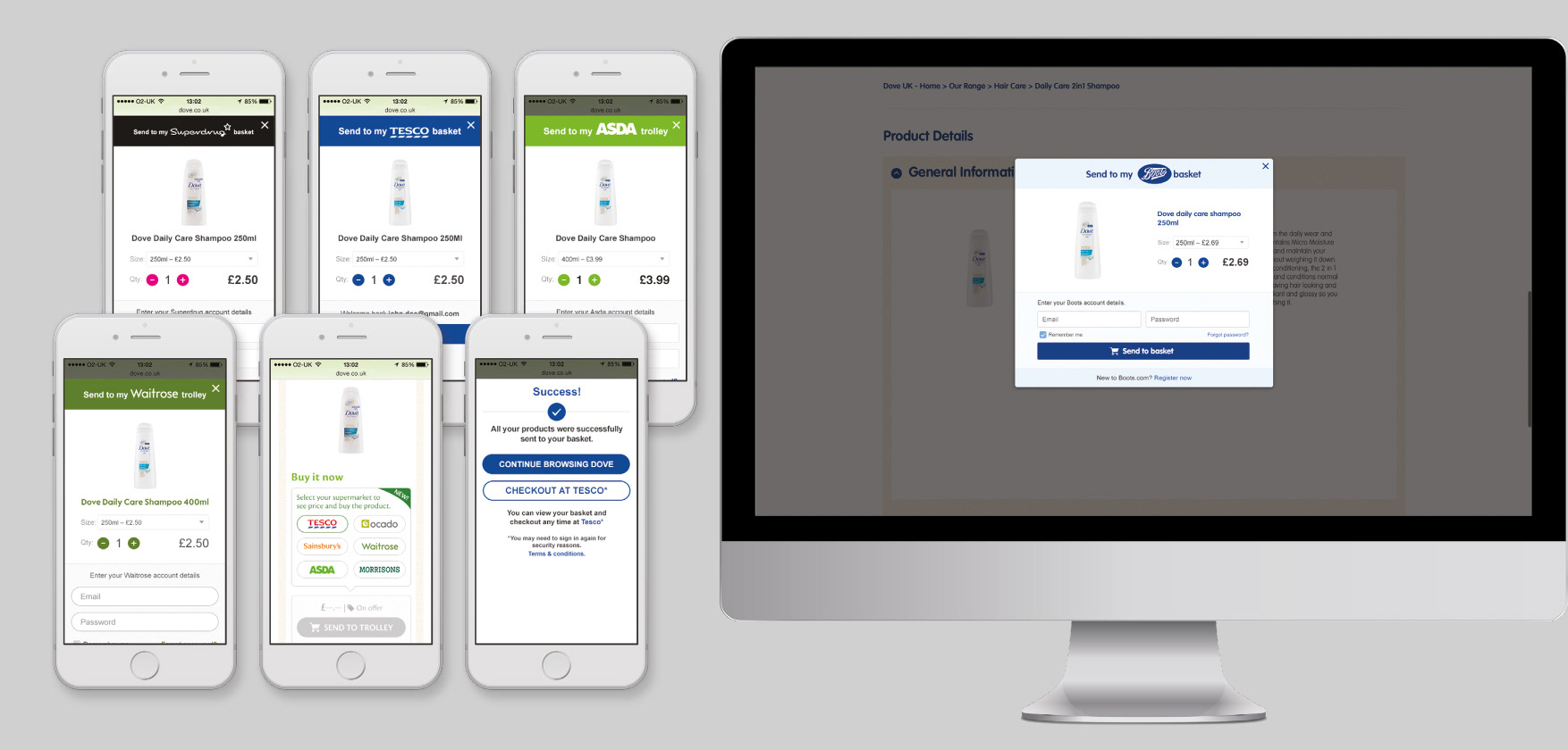 Szabadúszóként dolgoztam rövid ideig egy startupnál, akik a következő dolgot fejlesztették le: receptleírásoknál (pl. BBC Goodfood) interaktívvá tették a hozzávaló listákat, és a megfelelő gombokat benyomva eljuthatott a vásárló a retailerekhez. Na az az oldal nincs itt, mert semmi közöm nem volt hozzá. Ami viszont itt van, azok különböző brandek pop-up képernyői, attól függően, hogy hol akarta valaki megvásárolni a terméket. Vagy legalábbis én ennyit értettem akkor a folyamatból. Így hívták a céget: constant.co - Ezek a ui-ok egy jóváhagyási folyamathoz kellettek, nagyon sok felületet kellett készíteni, semmi mást nem bizonyít, csak hogy tudok brand guideline alapján fát vágni :D