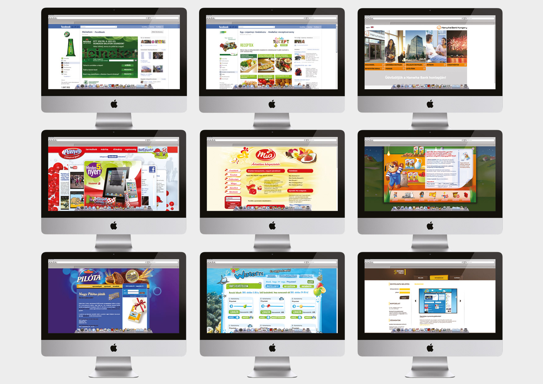 Régebbi oldalak, amin dolgoztam. Magyar ügynökségi tapasztalat, egy már megszűnt kisebb cégnél. Ilyen menő ügyfeleik voltak, igen (a 3. és 9. kép kivételével). Klikkelj rá, ha nagyobban néznéd.